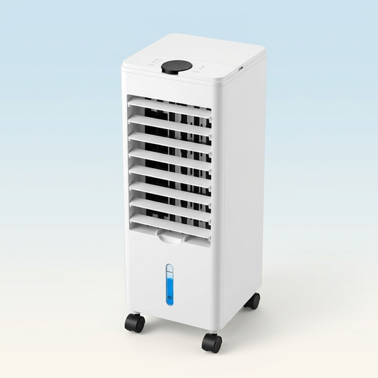 Not a fan. Not a swamp cooler. Measurable temperature drops in a closed room — with 3 speeds and a programmable timer.