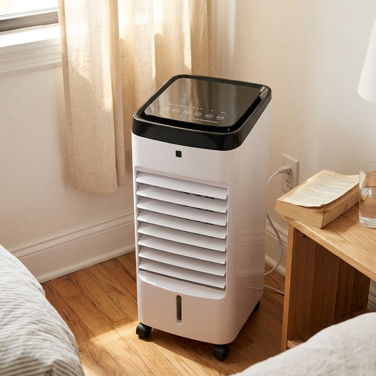 My landlord banned window units and anything that looks like an AC. He's done two inspections this summer. The AirNova's two-tone black and white design — glossy black top, white body — looks more like a premium humidifier or air purifier than an air conditioner. He looked at it both times, said nothing. No window modification. No hose. No installation. It just sits there looking like a stylish appliance. The removable tank means I refill it at the sink without any drama. The 4 wind modes mean I switch to Sleep mode at night without getting up — 16-foot remote handles it from bed. Best summer I've had in this apartment in four years.