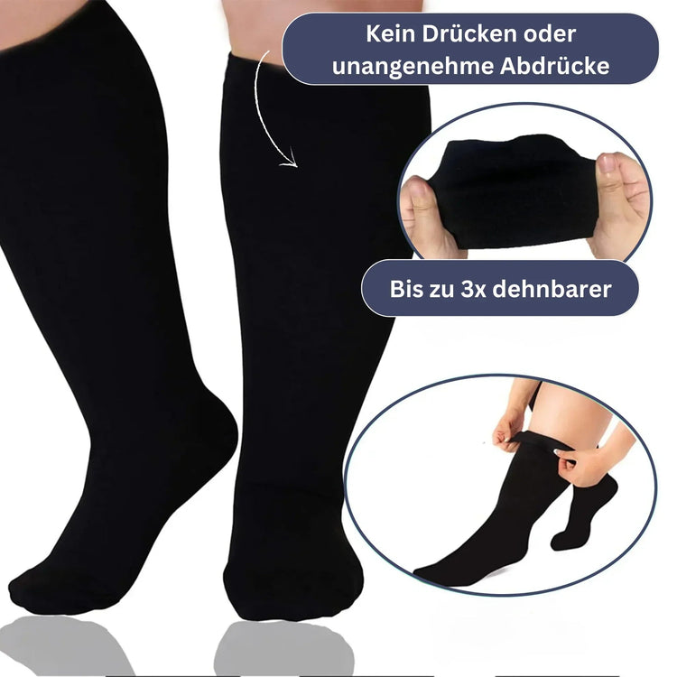 Die abgestufte Kompression fördert den Blutfluss von den Füßen zum Herzen. Weniger müde Beine am Abend. Weniger Schwellungen nach langem Stehen oder Sitzen.