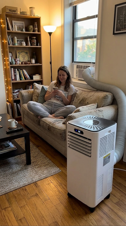 Last summer I installed a small window AC in my Phoenix apartment during a heat wave. Landlord sent a formal lease violation within 48 hours — remove it or face eviction. In a heat wave. In Phoenix. Spent the rest of summer miserable with box fans. Dreaded coming home every day. Ordered the FrostGuard in January so I'd be ready this year. The exhaust kit is unobtrusive — nothing hanging outside that draws attention. It just sits there looking like a standard appliance. My landlord has been inside my apartment twice this summer. Never said a word. Bedroom stays at 71°F all night. First summer in three years I haven't hated my own home.