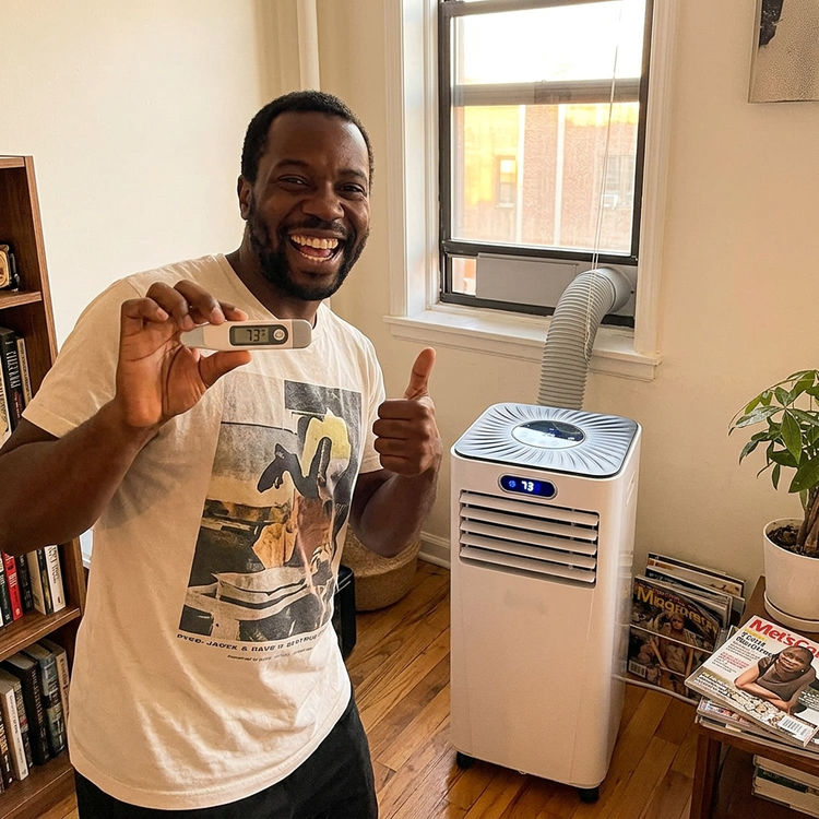 "Three summers of waking up at 3 AM soaked in sweat in my Brooklyn apartment. Tried every fan, every curtain, every Reddit trick. Nothing worked once it hit 90°F. Set the FrostGuard up Thursday evening. By Friday night my bedroom was 68°F. I sat on my bed and just cried. I'd genuinely forgotten what cool air felt like."