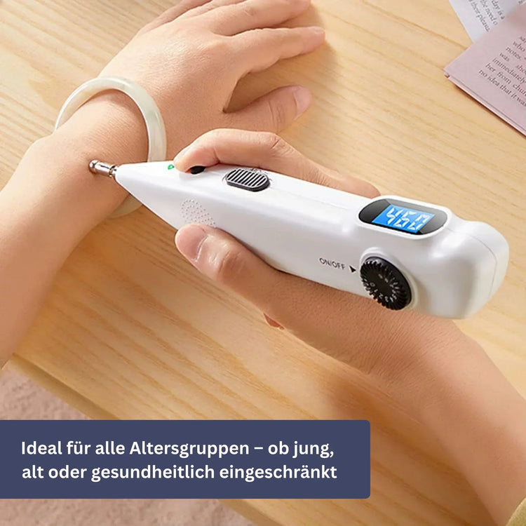 Der PainFree Akupressurstift nutzt elektrische Impulse, um Akupunkturpunkte zu stimulieren - ganz ohne Nadeln. Sanfte Impulse aktivieren die körpereigene Schmerzlinderung.