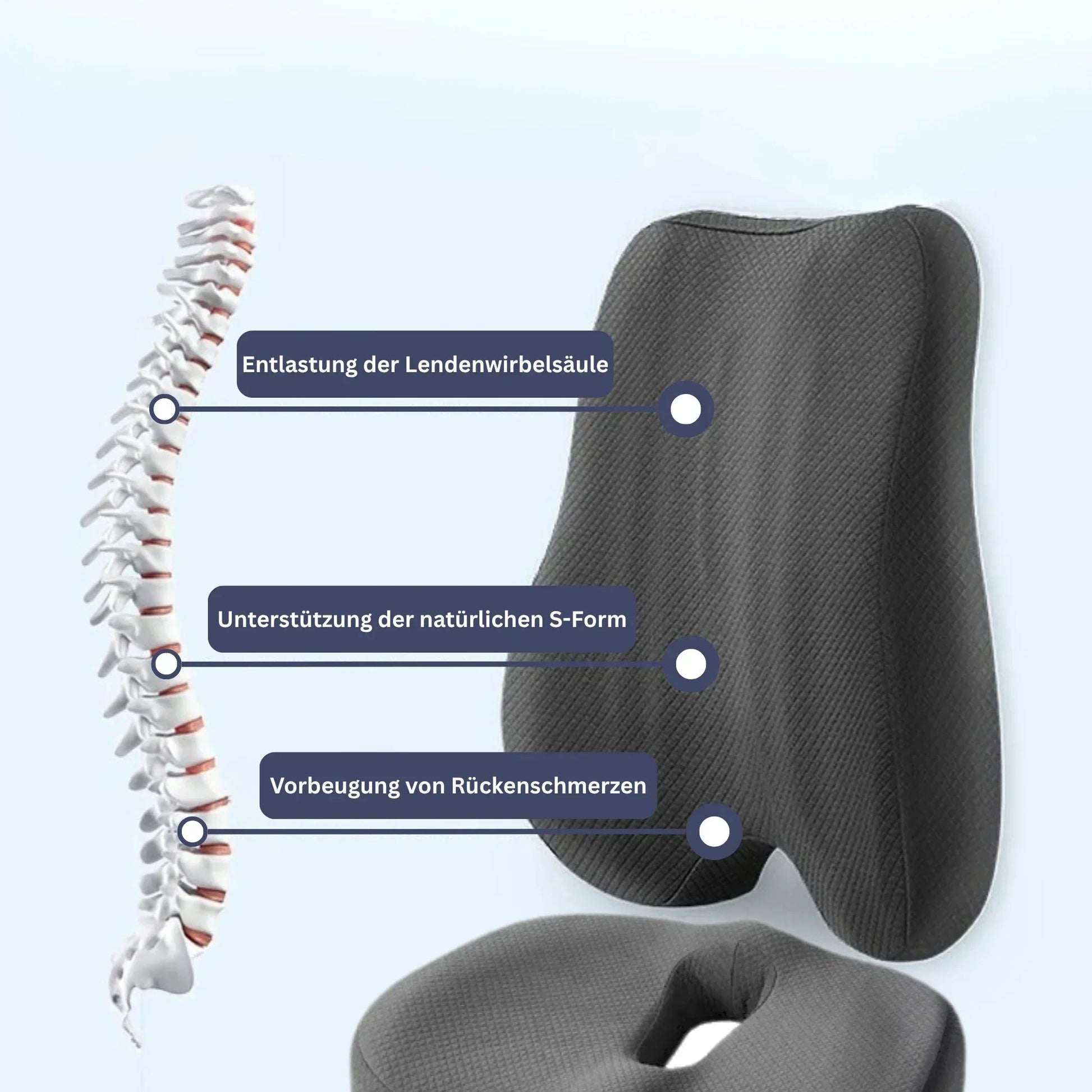 Viele Nutzer berichten von Linderung bei Rückenschmerzen durch langes Sitzen. Das Set fördert eine ergonomische Sitzhaltung und entlastet die Wirbelsäule. Bei anhaltenden Beschwerden sollten Sie einen Arzt konsultieren.