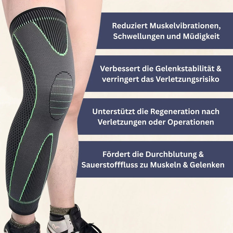 Die Kompression kann bei vielen Arten von Knieschmerzen Erleichterung bringen. Sie stabilisiert das Gelenk und fördert die Durchblutung. Bei starken oder anhaltenden Schmerzen einen Arzt konsultieren.