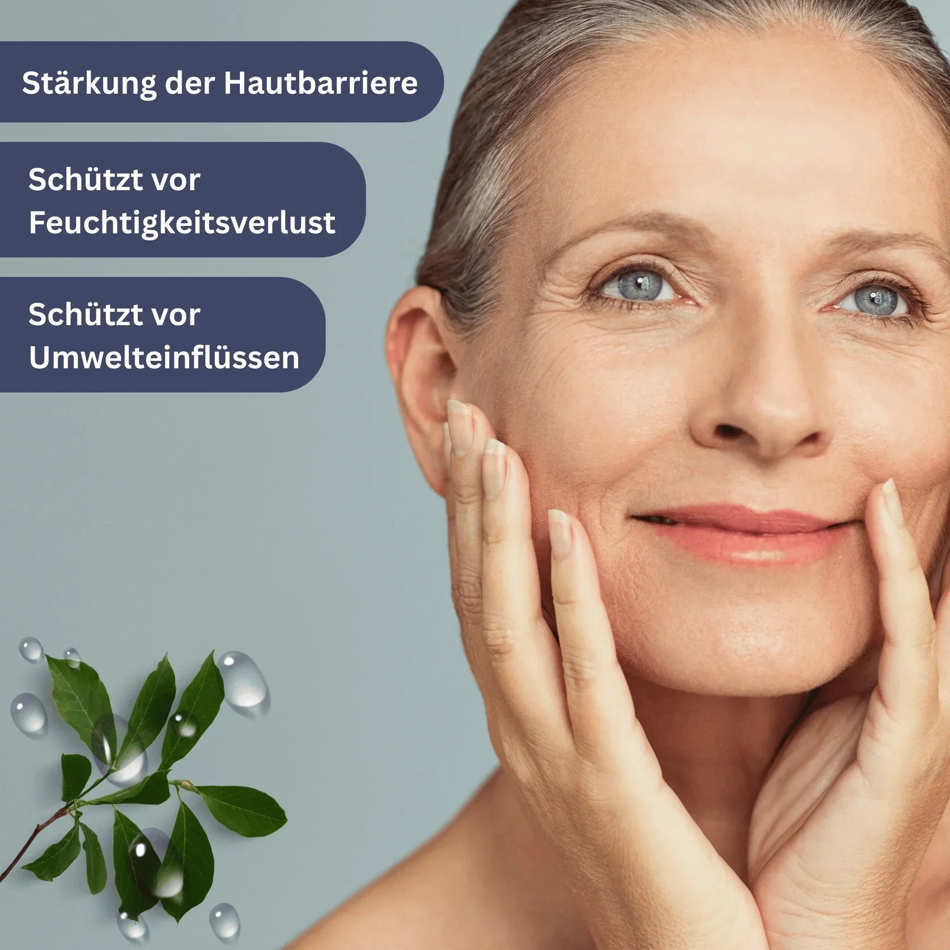 Ähnliche Fettsäurezusammensetzung wie menschlicher Talg. Dringt tief in die Hautschichten ein. Unterstützt die natürliche Hautbarriere.