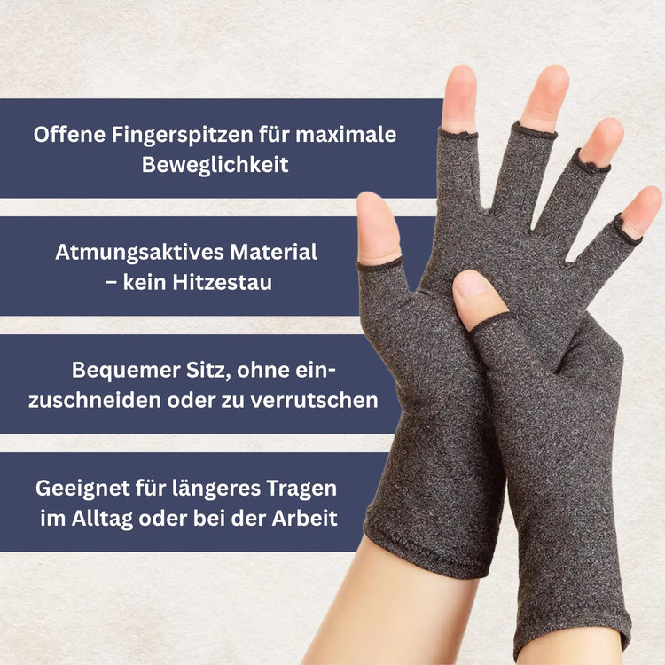 Offene Fingerspitzen für uneingeschränkte Feinmotorik. Tippen, Schreiben und Greifen ohne Hindernis. Volle Sensibilität und Tastsinn bleiben erhalten.