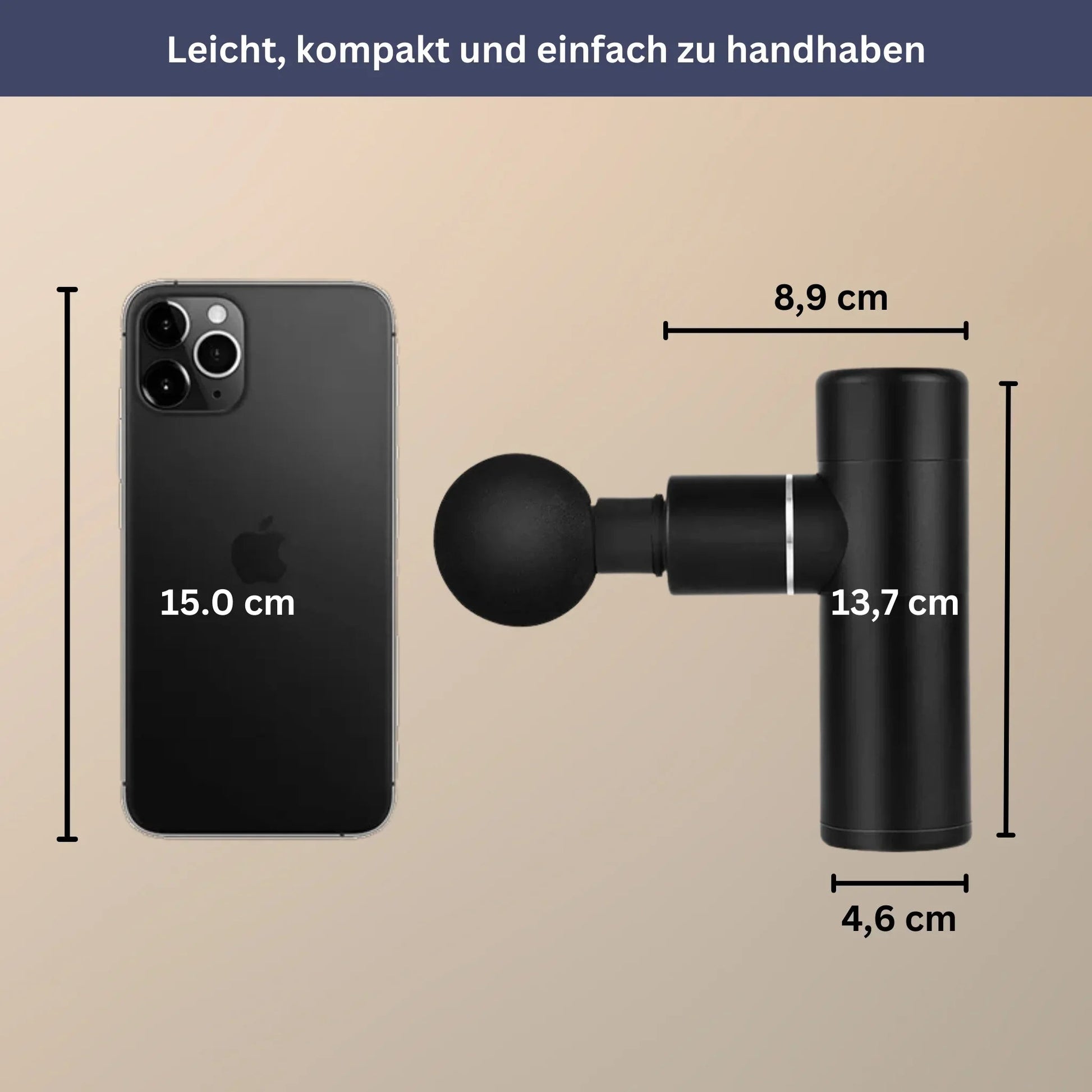 Bis zu 3200 Schläge pro Minute dringen tief ins Muskelgewebe. Verspannungen lösen sich, die Durchblutung wird angeregt. Schnellere Regeneration nach dem Training. Weniger Muskelkater am nächsten Tag.