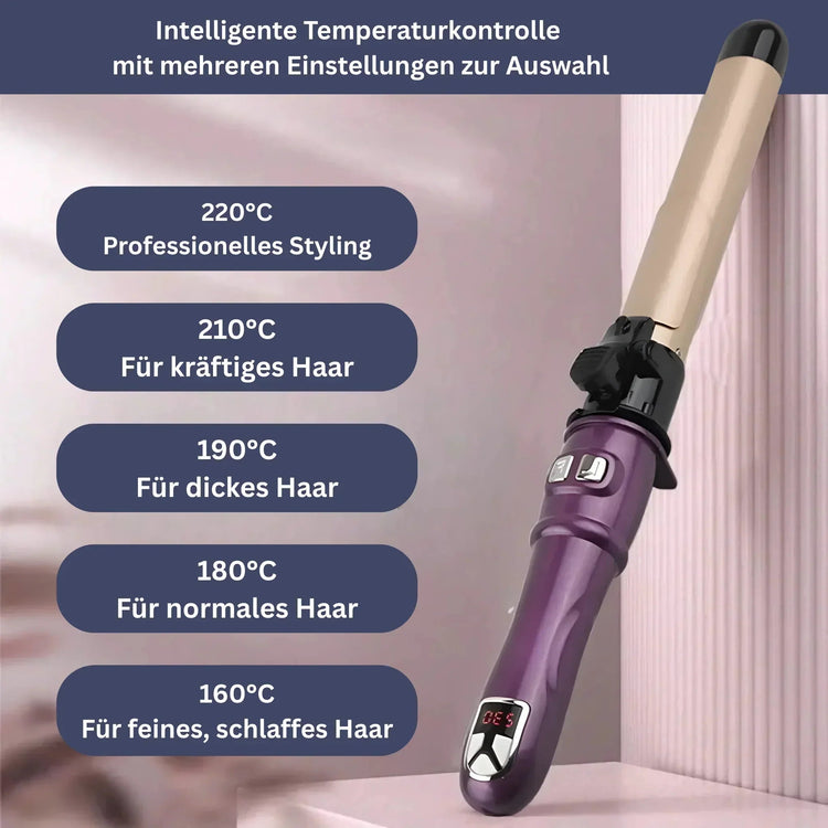 Der rotierende Mechanismus wickelt das Haar automatisch auf. Kein manuelles Drehen mehr nötig. Gleichmäßige Locken ohne Anstrengung in Sekunden.