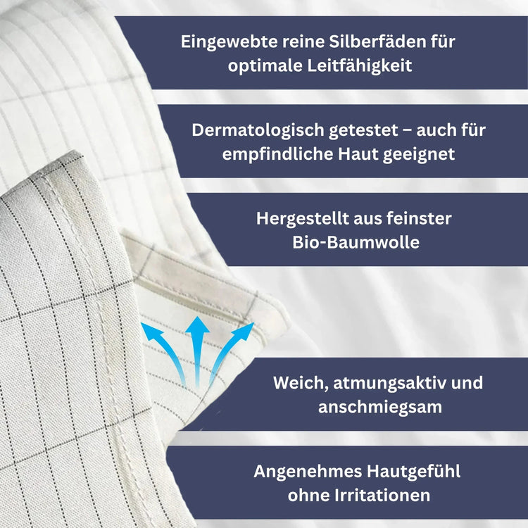 Das Laken verbindet Sie mit der natürlichen Energie der Erde. Wie barfuß auf Gras laufen - nur während Sie schlafen. Die Erdung kann Entzündungen reduzieren und den Körper wieder ins Gleichgewicht bringen.