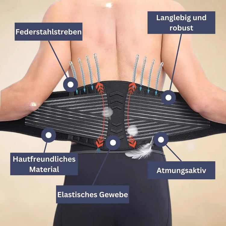 Der SpineGuard Pro wurde mit Orthopäden entwickelt. Die integrierten Stützstäbe stabilisieren den unteren Rücken. Reduziert die Belastung bei schweren Tätigkeiten.