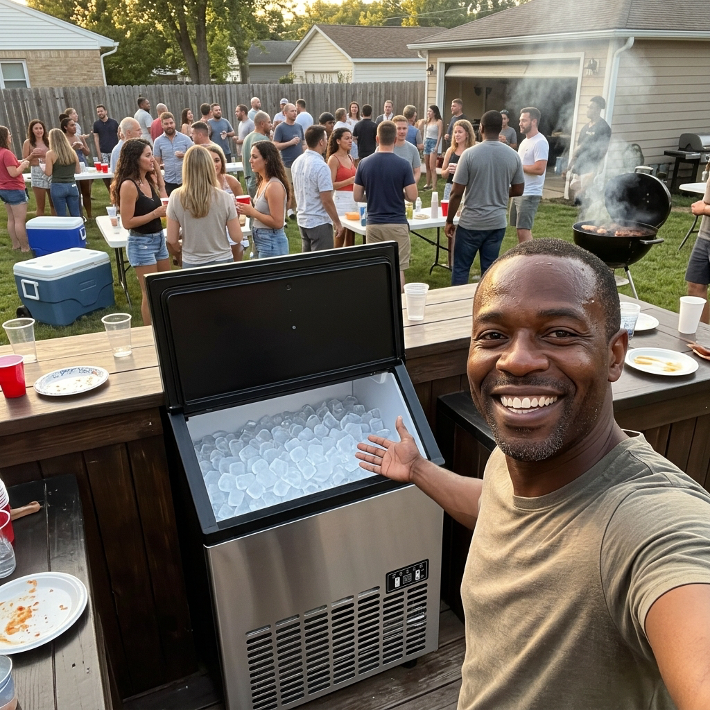 My previous party setup: buy 8 bags of ice the morning of, haul them to the coolers, watch half of them melt before people arrived, run to the gas station at 8pm when we inevitably ran out. Every single time. Installed the SteelFrost Pro under my bar counter on a Friday. Saturday I had 50 people over for a graduation party. Six hours. I opened the ice bin maybe five times all night to scoop into coolers. It refilled itself every time. I never sent anyone on an ice run. I never thought about ice once. That alone paid for the machine.