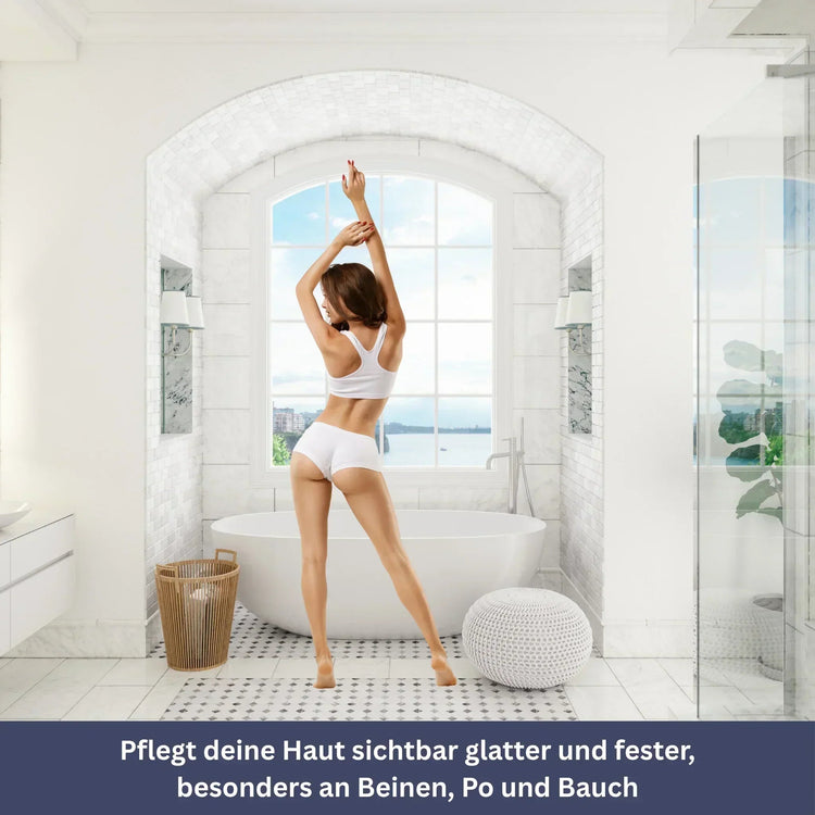 Regelmäßige Anwendung kann das Erscheinungsbild von Cellulite deutlich verbessern. Die Massage löst Verklebungen im Bindegewebe. Die Haut wirkt glatter und ebenmäßiger.
